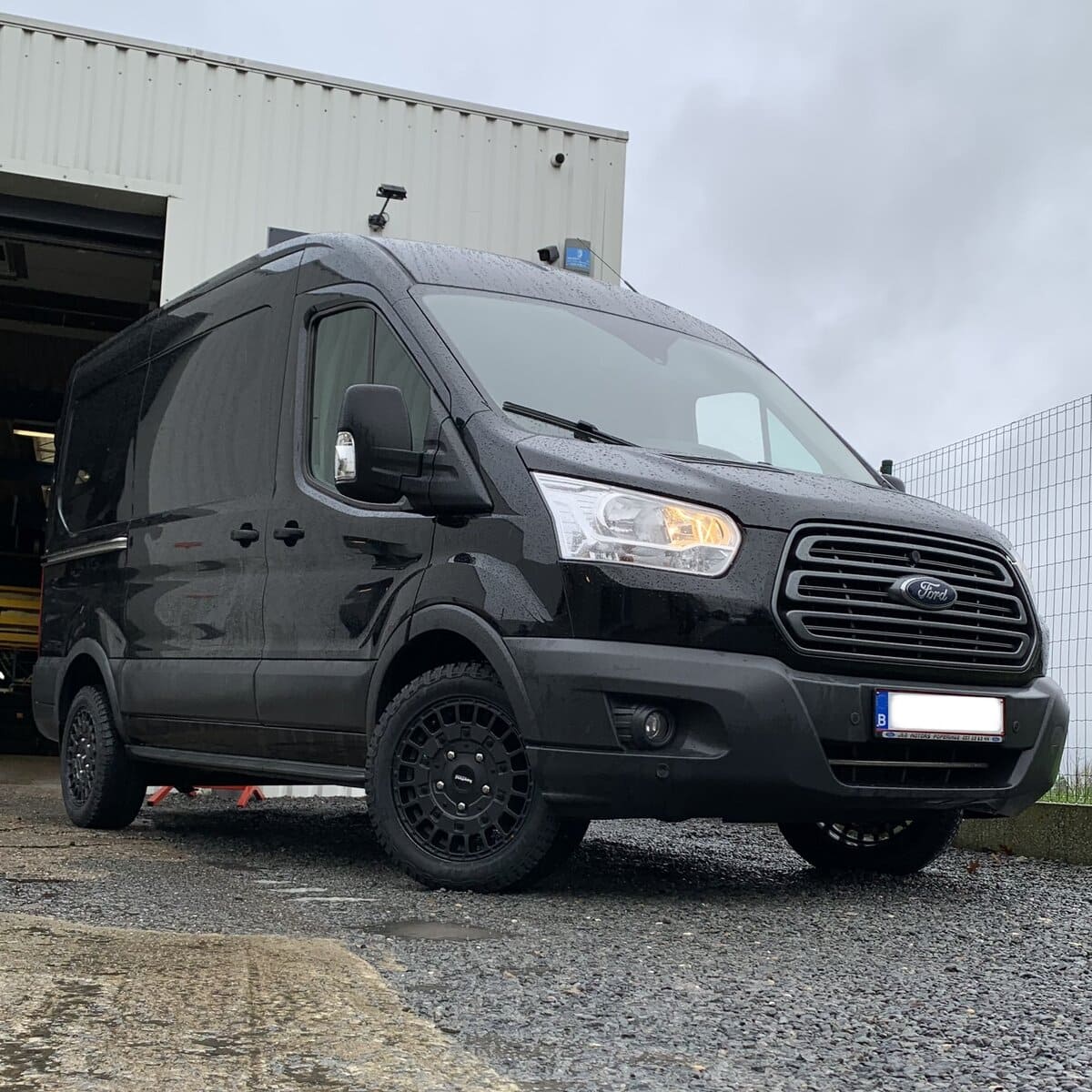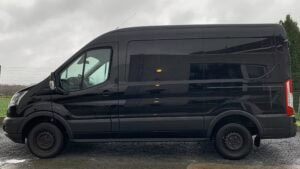 Deze robuuste Ford Transit kreeg een opvallende make-over met een set 17 inch Supermetal Rig velgen in matzwart. De combinatie van de zwarte velgen met de zwarte carrosserie geeft de bestelwagen een stoere, krachtige uitstraling die perfect past bij zijn veelzijdig karakter.